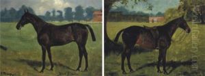 Brood Mares Amphinome And Miss Lettice With Their Foals In Anextensive Landscape
