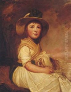 Portrait Of Lady Herries, Half-length, In A Grey Dress And Whitecollar, With A Wide-brimmed White Hat With A Blue Ribbon