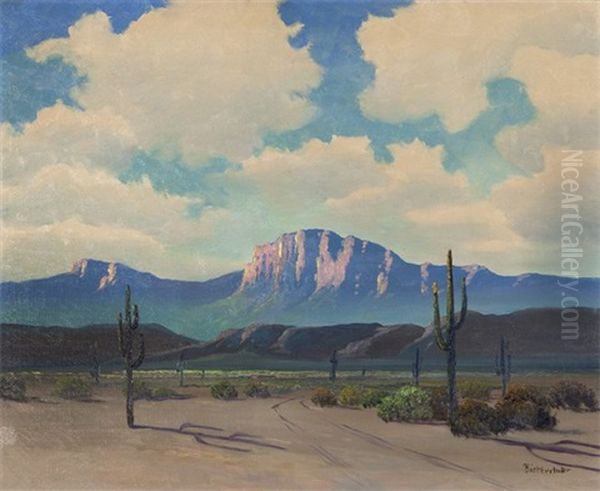 Bring the timeless beauty of George Sanders Bickerstaff's Superstition Mountain Arizona into your home with a handmade oil painting reproduction. Carefully recreated on canvas by skilled artists using traditional techniques, this piece captures the delicate brushwork, subtle light, and vibrant color of the original masterpiece. With museum-level quality and rich texture, it brings elegance and artistic depth to any space. Enjoy free shipping and make this masterpiece a part of your personal collection.