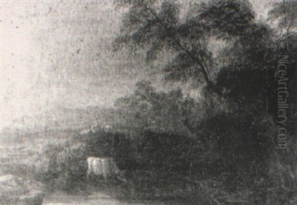 Cattle Watering, Sheep Grazing Beyond