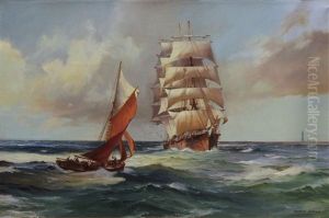 British Merchant And A Plymouth Cutter Off Eddystone Light