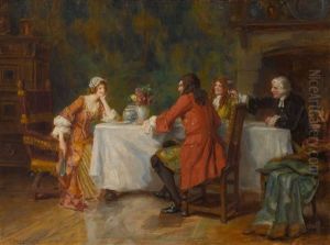 George Sheridan Knowles was a British artist born on February 25, 1863, in Manchester, England. He is best recognized for his work as a genre painter, focusing on historical and literary themes. Knowles was part of the late Victorian and Edwardian art scenes, during which time there was a strong interest in romantic and narrative subjects.
