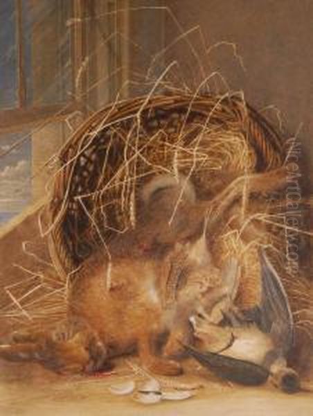 Still Life Study- Dead Hare And Bird In A Wicker Basket