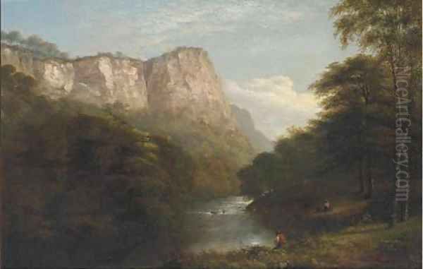 Figures in a river gorge