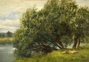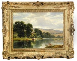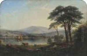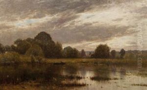 Paesaggio Conn Chiesa Di Campagna, Fiume E Barca