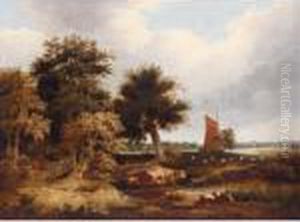 An Extensive Landscape Near Whitlingham, Norwich, With A Drover And His Cattle