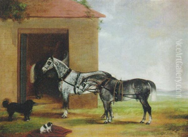 Bring the timeless beauty of George W. Miller's Two Dapple Grey Carriage Horses With Dogs Outside A Stable into your home with a handmade oil painting reproduction. Carefully recreated on canvas by skilled artists using traditional techniques, this piece captures the delicate brushwork, subtle light, and vibrant color of the original masterpiece. With museum-level quality and rich texture, it brings elegance and artistic depth to any space. Enjoy free shipping and make this masterpiece a part of your personal collection.