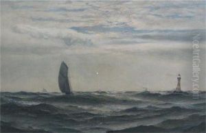 Voilier Dans La Tempete Pres D'un Phare