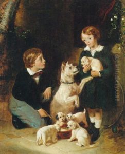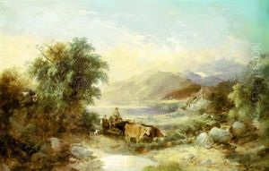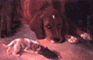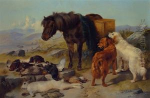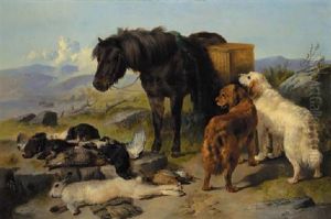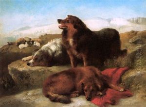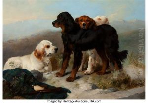 A Golden Retreiver, An Irish Setter And A Gordon Setter In A Mountainous Landscape