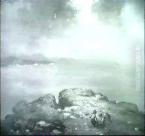 Two Figures Upon A Cliff With The Donegal Costline Stretching Beyond