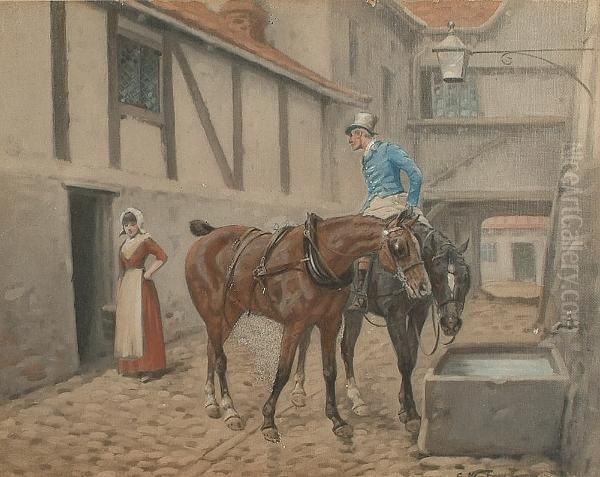 Bring the timeless beauty of George Wright's Resting Before An Inn. into your home with a handmade oil painting reproduction. Carefully recreated on canvas by skilled artists using traditional techniques, this piece captures the delicate brushwork, subtle light, and vibrant color of the original masterpiece. With museum-level quality and rich texture, it brings elegance and artistic depth to any space. Enjoy free shipping and make this masterpiece a part of your personal collection.