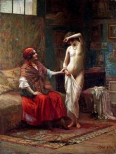 Bring the timeless beauty of Georges Antoine Rochegrosse's In The Harem into your home with a handmade oil painting reproduction. Carefully recreated on canvas by skilled artists using traditional techniques, this piece captures the delicate brushwork, subtle light, and vibrant color of the original masterpiece. With museum-level quality and rich texture, it brings elegance and artistic depth to any space. Enjoy free shipping and make this masterpiece a part of your personal collection.