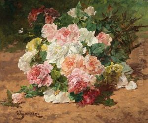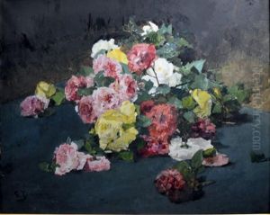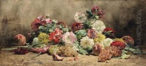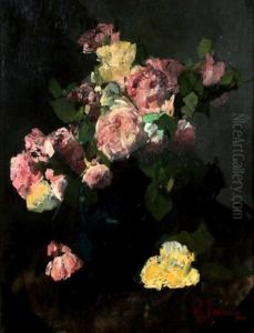 Roses, Chrysanthemums And Other Summer Blooms In A Vase