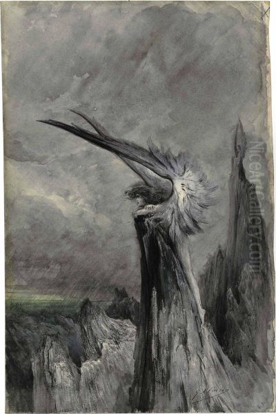 A Winged Chimera Over The Rocks Of The Port-coton At Belle-ile