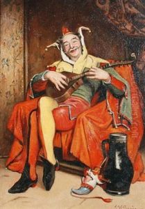 Puppenspielender Narr Mit Gitarrespielendem Affchen
