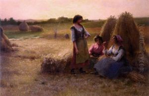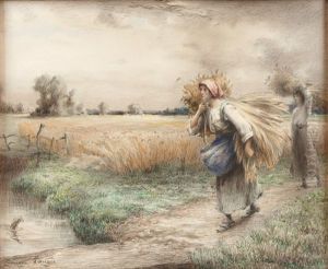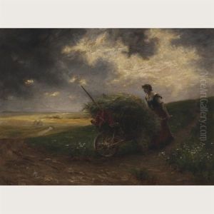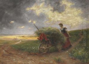 Femme Et Jeune Fille Revenant Des Foins Avant L'orage