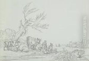 Bewaldete Landschaft Mit Einer Uberfallenen Wagenkolonne. Ol Auf Leinwand (doubliert). H 36,8; B 45 Cm.