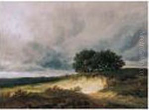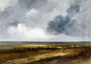Verhangene Wolken Uber Weiter Landschaft Mit Bauernwagen