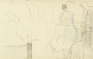 Trois Bateaux Et Un Marin (study For L'echouage A Grandcamp)