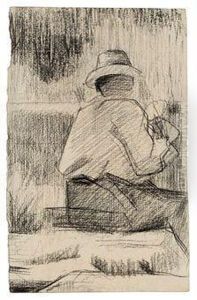 Seated Boy with Straw Hat, study for Bathers at Asnieres