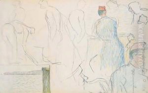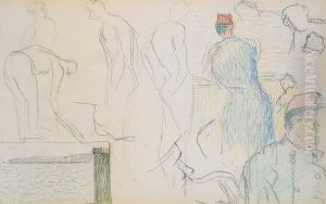 Personnages Debout, Jambes Croisees, Etudes De Mains
