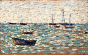 Trois Bateaux Et Un Marin (study For L'echouage A Grandcamp)
