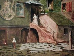 Scene De Genre Dans Une Cour