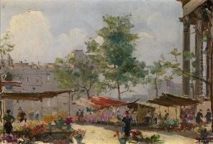 Flower Market Oil Painting by Georgi Alexandrovich Lapchine