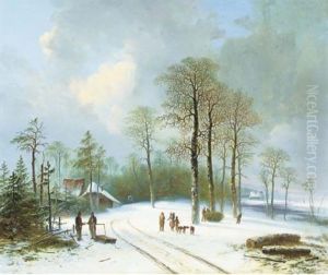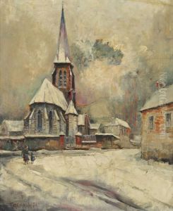 Village Sous La Neige Oil Painting by Georgi Alexandrovich Lapchine