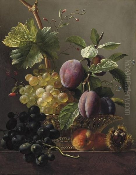 Grapes, Prunes, Peaches And A Chessnut On A Ledge