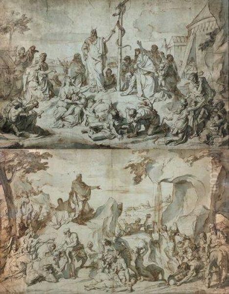 Moise Et Le Serpent D'airain Et Moise Frappant Le Rocher