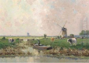 A Polder Landscape With Windmill