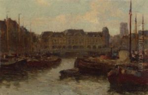 A View Of Dordrecht Harbour With The Grote Kerk