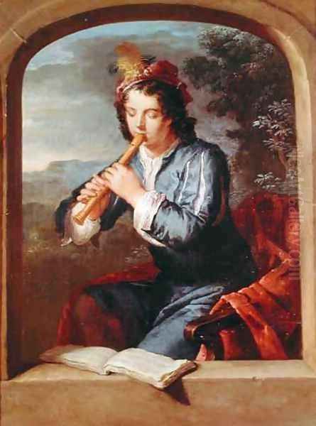 Young Man Playing the Flute Oil Painting - Gerard Hoet