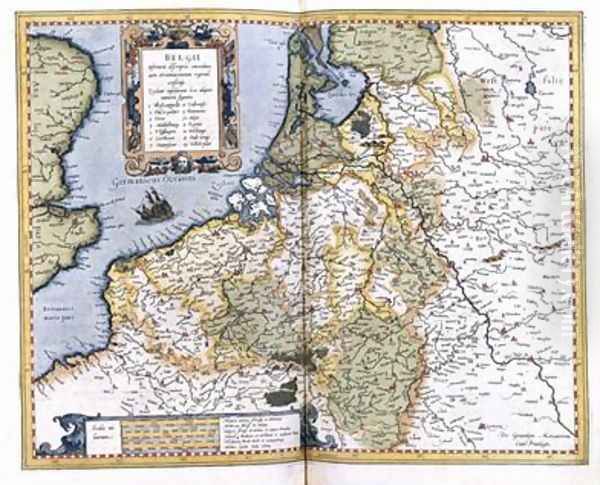 Map of Belgium pages 296-297 of Atlas sive Cosmographicae meditationes de fabrica mundi et fabricati figura