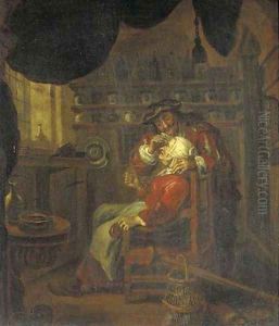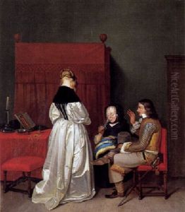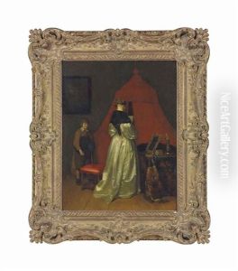 A Lady With Her Maid And Serving Boy In Her Bedchamber