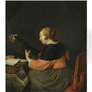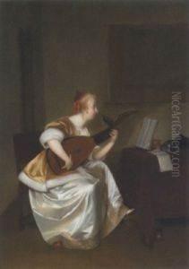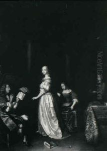 A Lady Playing A Virginal With A Man Singing In An Interior