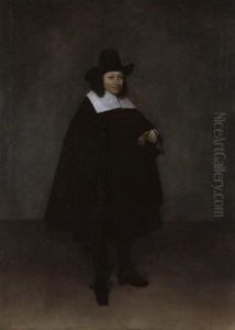 A Portrait Of Andries De Graeff, Burgomaster Of Amsterdam, Wearing A Black Suit And White Collar, Beside A Desk With A Book