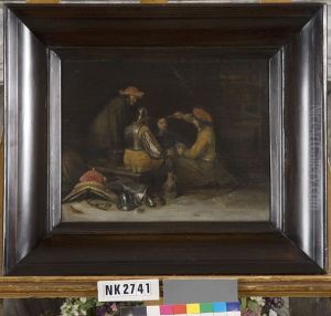 Interieur met kaartspelende soldaten