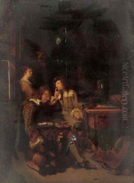 Bring the timeless beauty of Gerard Ter Borch's A guardroom interior into your home with a handmade oil painting reproduction. Carefully recreated on canvas by skilled artists using traditional techniques, this piece captures the delicate brushwork, subtle light, and vibrant color of the original masterpiece. With museum-level quality and rich texture, it brings elegance and artistic depth to any space. Enjoy free shipping and make this masterpiece a part of your personal collection.