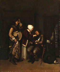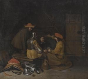 Ter Borch; And After Pieter Cornelisz. Van Slingelandt Guardsmen Reading A Letter In An Interior