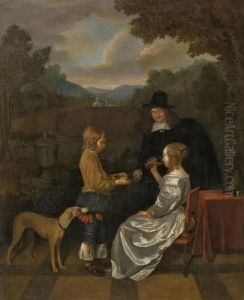 A Woman Playing The Theorbo Accompanied By Two Gentlemen, In Aninterior