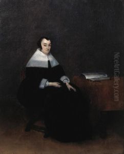 Portrait Of A Lady, Three-quarter-length, Seated, In A Black Dresswith A White Ruff And Bonnet