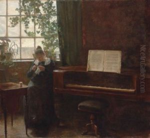 A Young Lady Playing A Lute In An Interior
