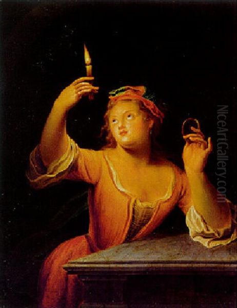 Junge Dame Mit Einem Brennenden Kerze Und Einem Medaillon, Allegorie Des Gesichts