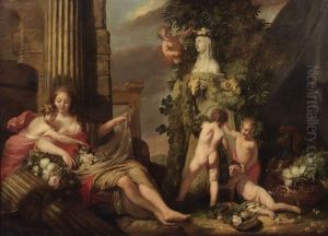 Nymphs And Bacchantes Paying Homage At The Temple Of Flora