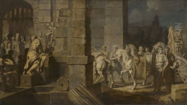 Bring the timeless beauty of Gerard de Lairesse's Einzug durch das Stadtor (Folge 1/12) into your home with a handmade oil painting reproduction. Carefully recreated on canvas by skilled artists using traditional techniques, this piece captures the delicate brushwork, subtle light, and vibrant color of the original masterpiece. With museum-level quality and rich texture, it brings elegance and artistic depth to any space. Enjoy free shipping and make this masterpiece a part of your personal collection.