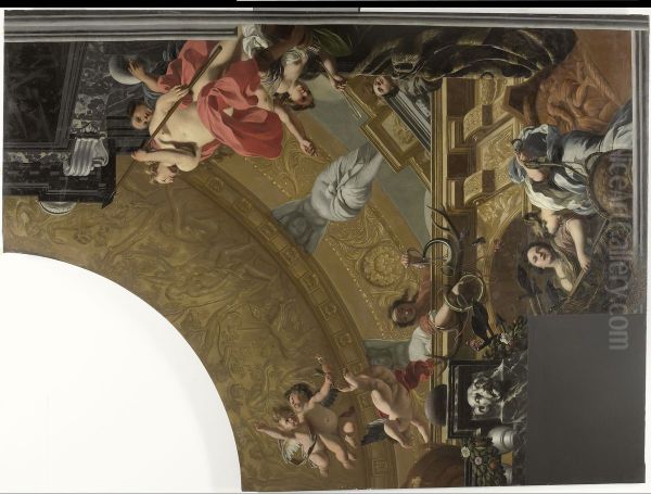 Onderdeel (rechtsboven) van een plafondschildering met als hoofdvoorstelling Diana en haar gezellinnen
