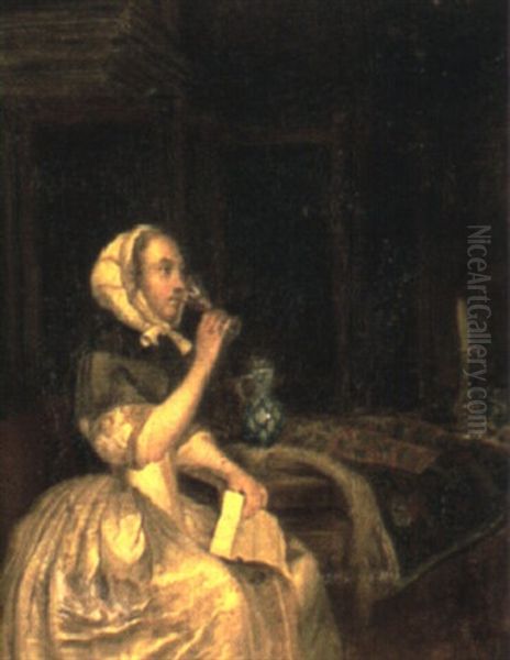 Bring the timeless beauty of Gerard Ter Borch's A Lady Drinking At A Table into your home with a handmade oil painting reproduction. Carefully recreated on canvas by skilled artists using traditional techniques, this piece captures the delicate brushwork, subtle light, and vibrant color of the original masterpiece. With museum-level quality and rich texture, it brings elegance and artistic depth to any space. Enjoy free shipping and make this masterpiece a part of your personal collection.