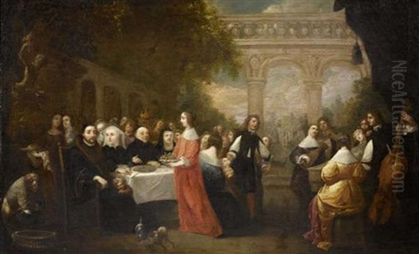 Bring the timeless beauty of Gerard Ter Borch's Festgesellschaft into your home with a handmade oil painting reproduction. Carefully recreated on canvas by skilled artists using traditional techniques, this piece captures the delicate brushwork, subtle light, and vibrant color of the original masterpiece. With museum-level quality and rich texture, it brings elegance and artistic depth to any space. Enjoy free shipping and make this masterpiece a part of your personal collection.